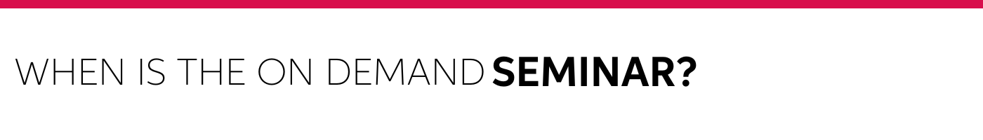 To access the ON DEMAND seminar, click on the CLASS REGISTRATION & CALENDAR REMINDER below, this allows you to set a reminder, and prompt you to view the seminar once it becomes available.