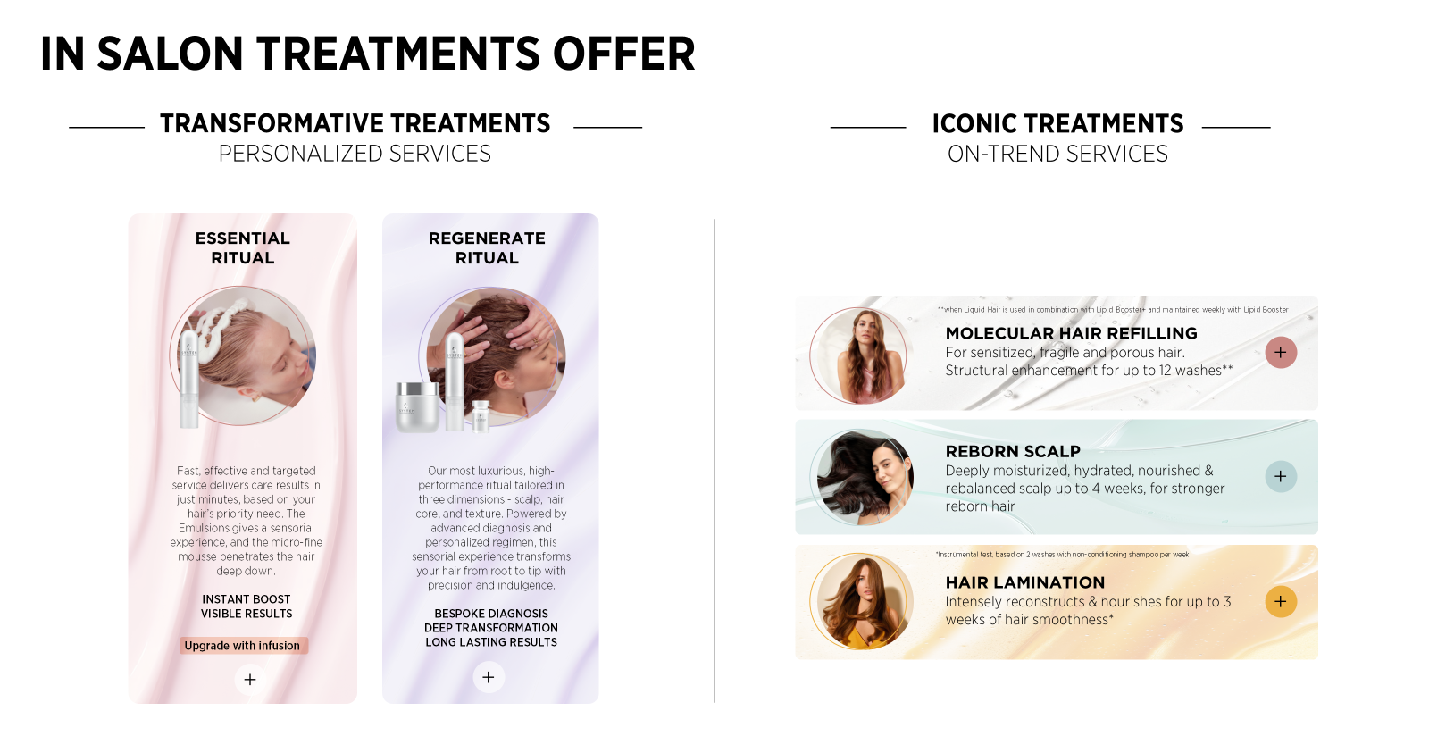 ET EKSEPSJONELT SALONGØYEBLIKKEn løftet behandlingsopplevelse ligger i detaljene. Våre produkter har luksuriøse teksturer og delikate dufter som forvandler en behandling til en komplett sensorisk opplevelse – håret føles fornyet, og kundene føler seg bortskjemt.